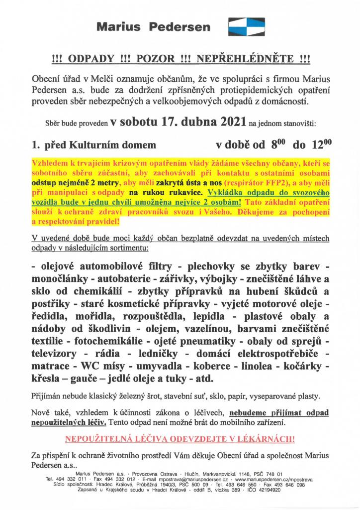 Sběr nebezpečných a velkoobjemových odpadů